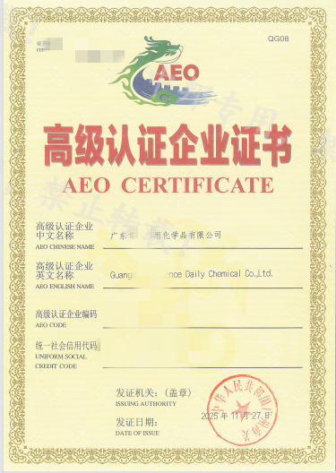 恭贺广东XX日用化学品有限公司2025年11月顺利通过AEO认证